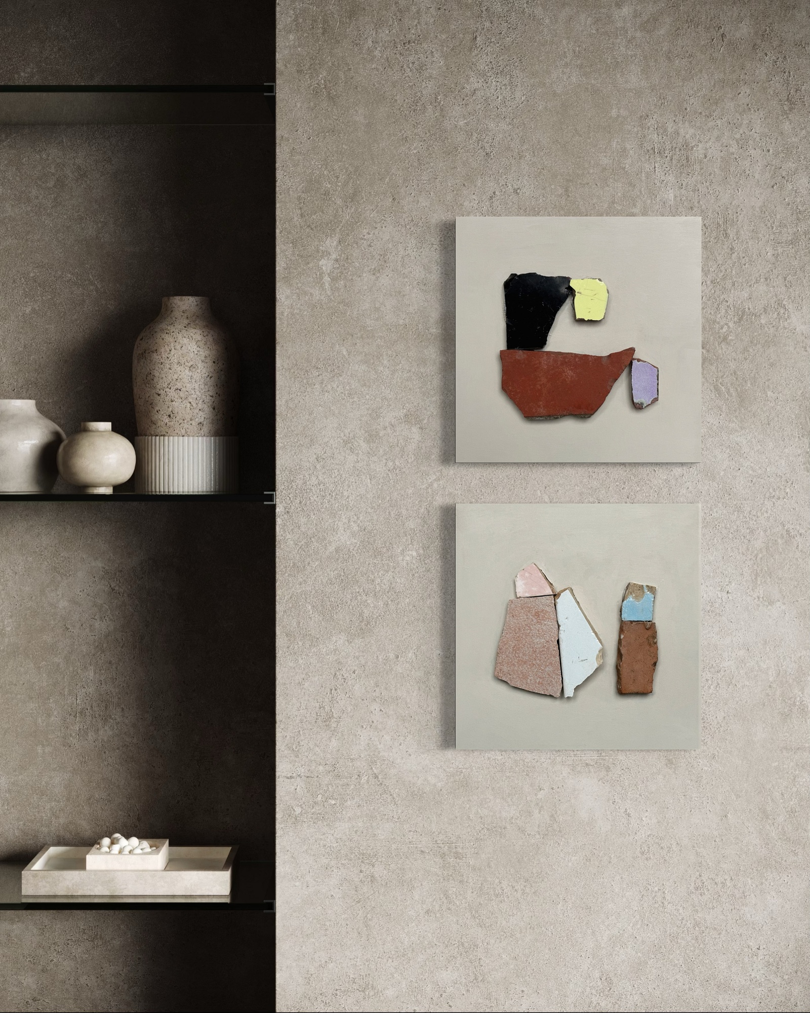 expressive shapes softened in mellow shades conjure a delicate simplicity