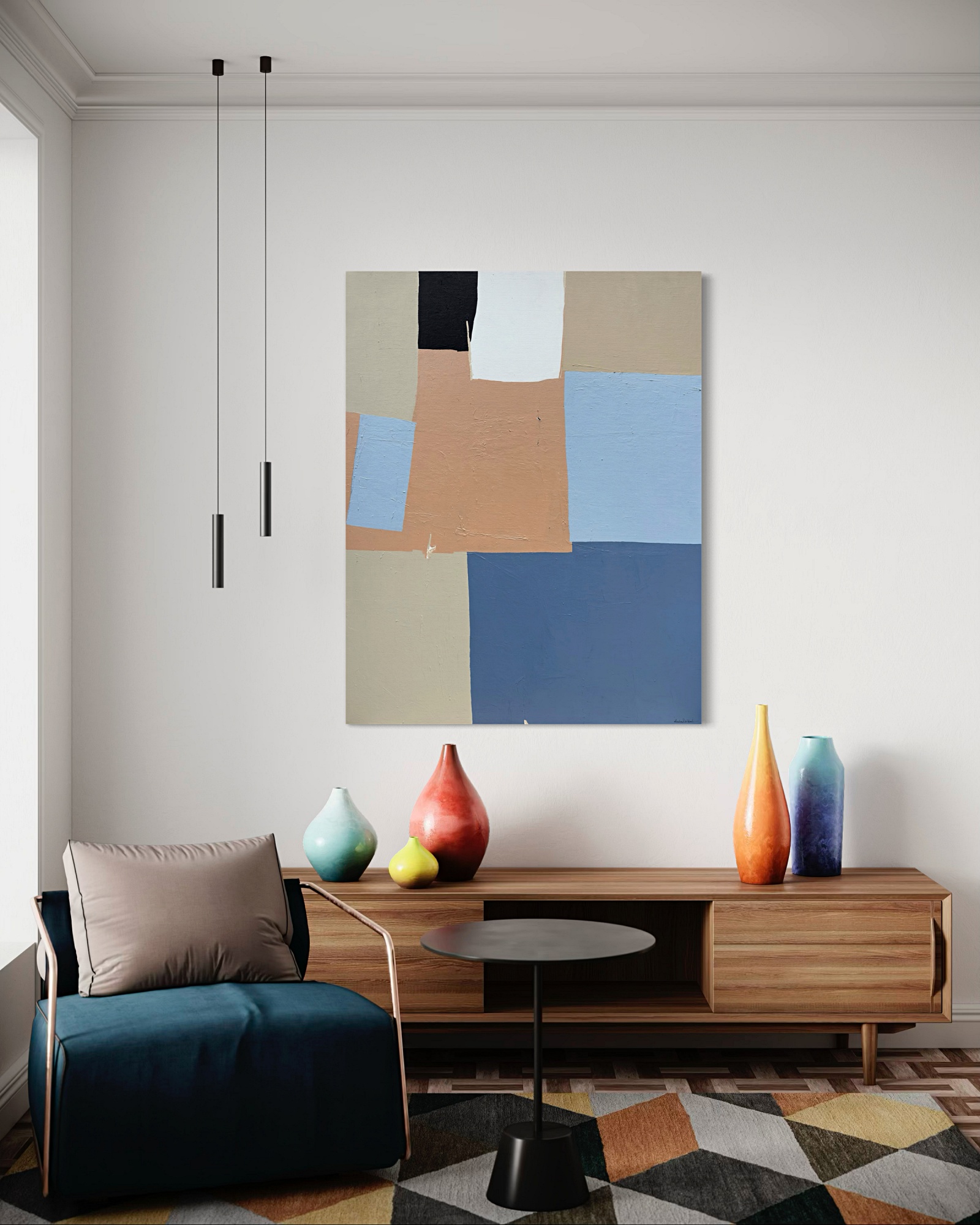 Hand painted acrylic on stretched canvas. Sides painted (white).